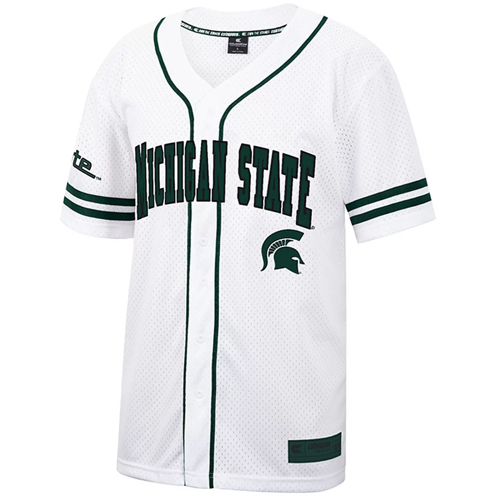 As a free-spirited Michigan State Spartans fan, you’re always looking for new ways to rep your squad on game days. With this Colosseum baseball jersey, you can enjoy the lightweight and breathable mesh this top has to offer. On top of that, the sewn-on stripes, embroidered Michigan State Spartans graphics and full-button front give it that jersey-like design, making it the perfect addition to your gear.