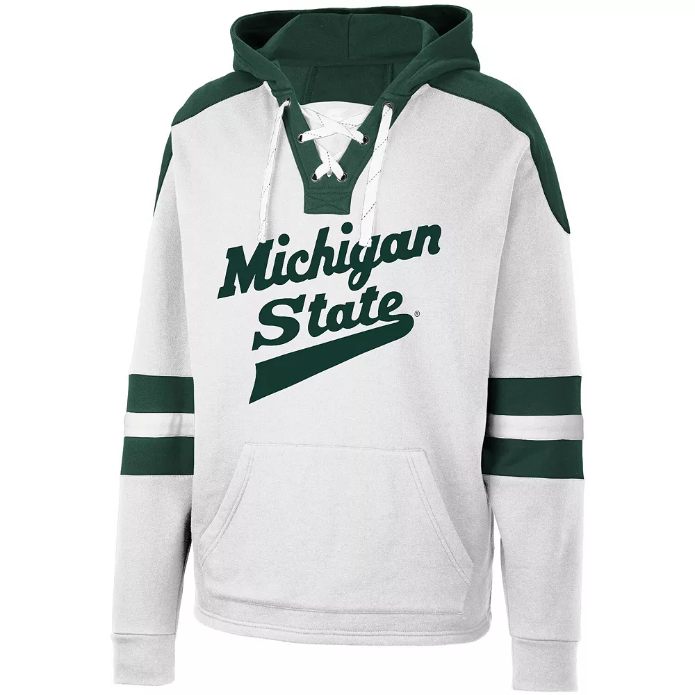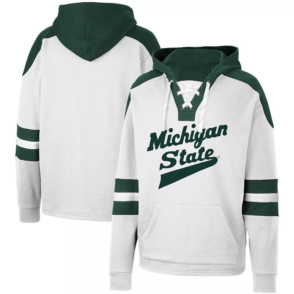 Show your unwavering Michigan State Spartans spirit with this Lace-Up 4.0 pullover hoodie from Colosseum. Not only is it the neckline that makes this top unique, but the sewn-on stripes on both sleeves add an extra layer of team color and excitement. The team’s logo across the front is sure to make this midweight piece your next go-to option for Michigan State Spartans game day.