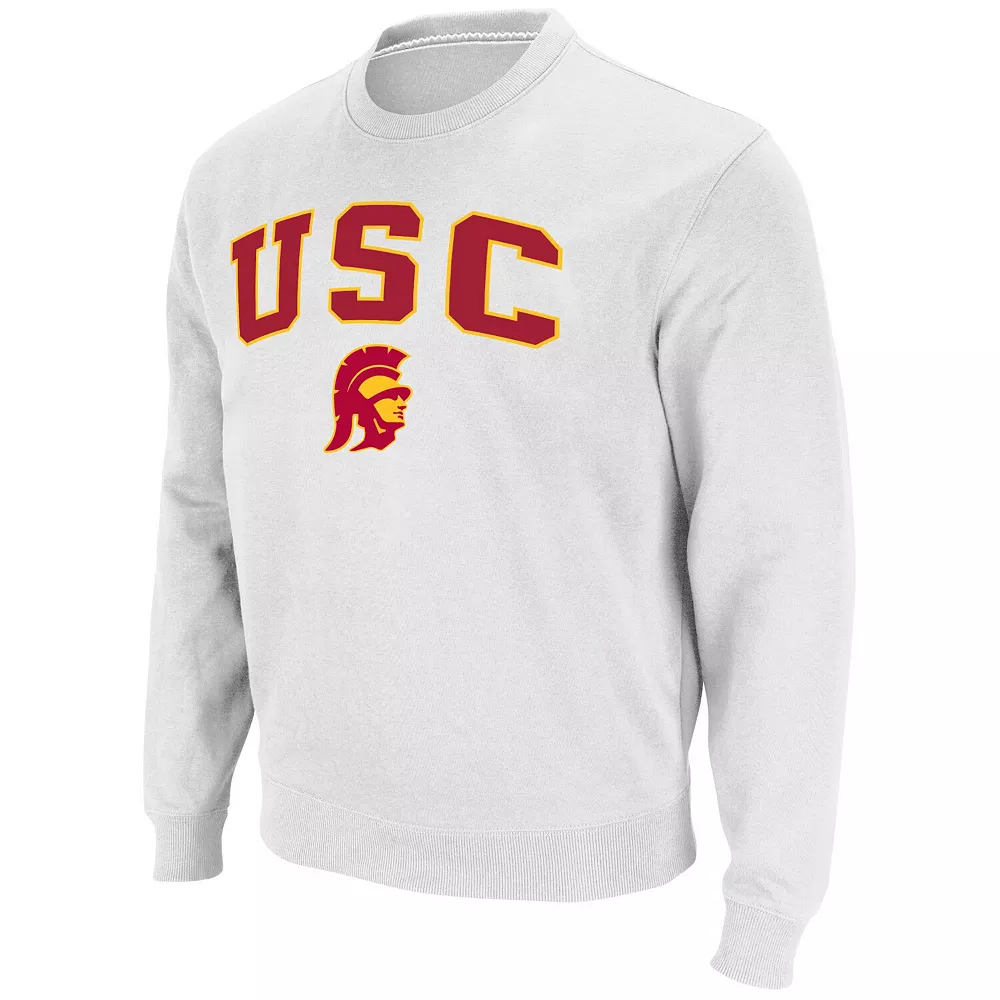 Keep your favorite college team in easy view with this USC Trojans Arch & Logo sweatshirt from Colosseum. It features large USC Trojans appliques on comfy blended material. Fleece lining also adds an extra layer of warmth and softness to this solid pullover.